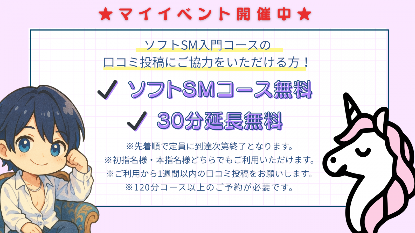 何回かユニ君を指名していますが、初めてソフトSM入門コースに挑戦しました。