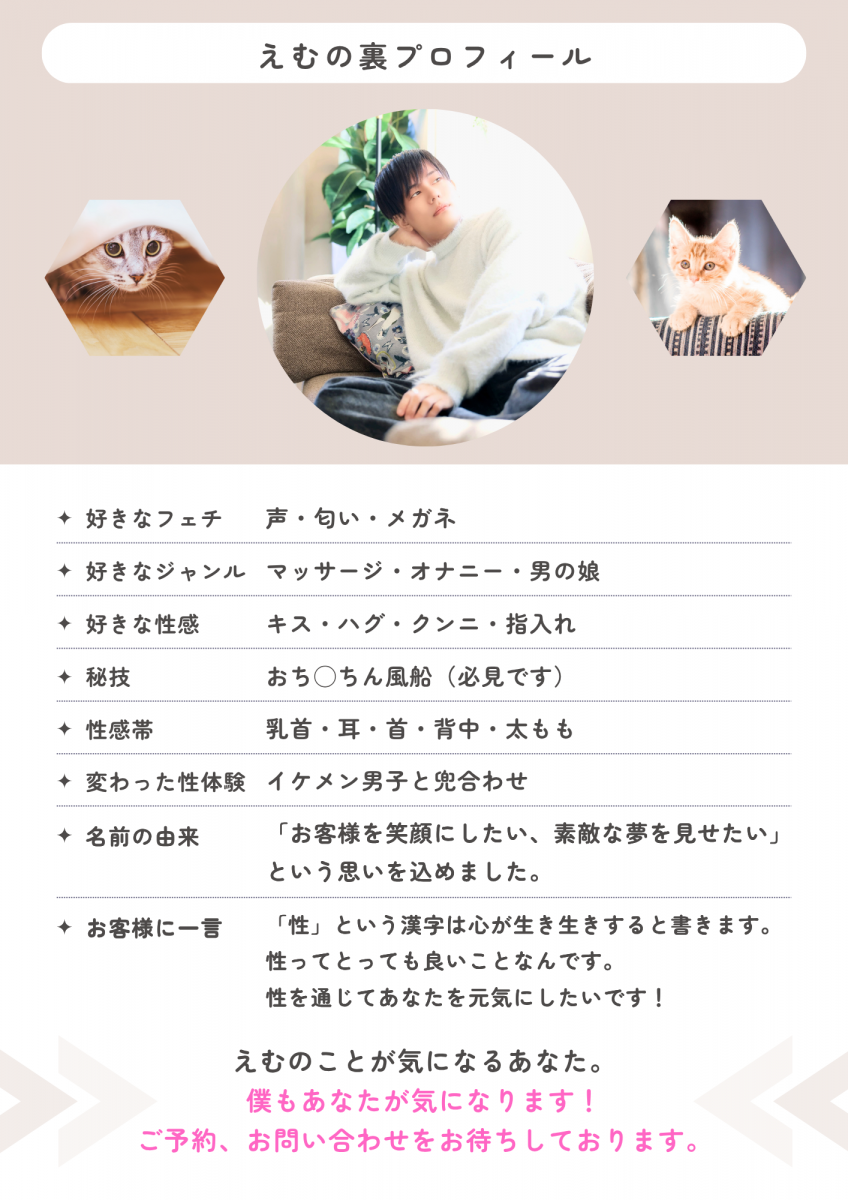 最近、少し無理して頑張ってたから、自分へのご褒美で笑夢くん指名で、初めて利用しました。