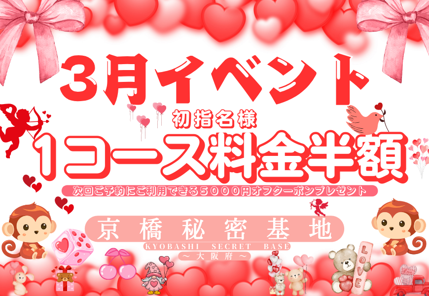 初指名様1コース料金半額&次回ご予約時5000円オフ