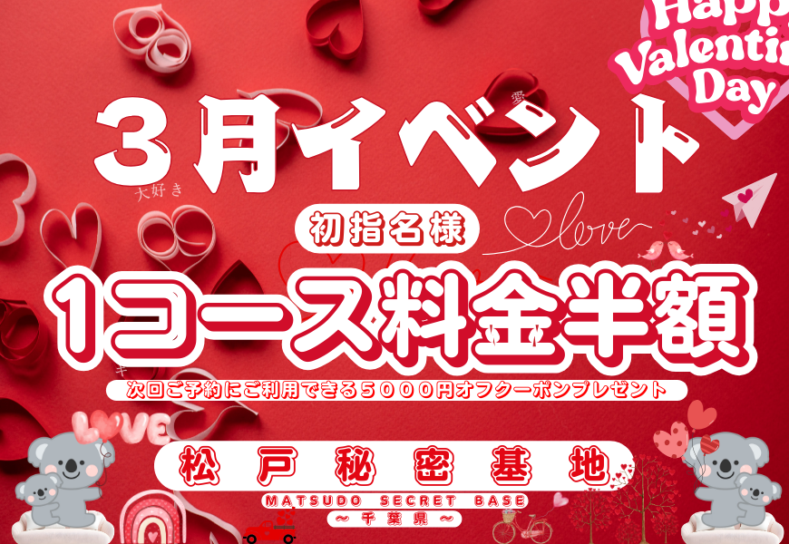 3月イベント 1コース料金半額など開催中 2026/03/13(金)12:00