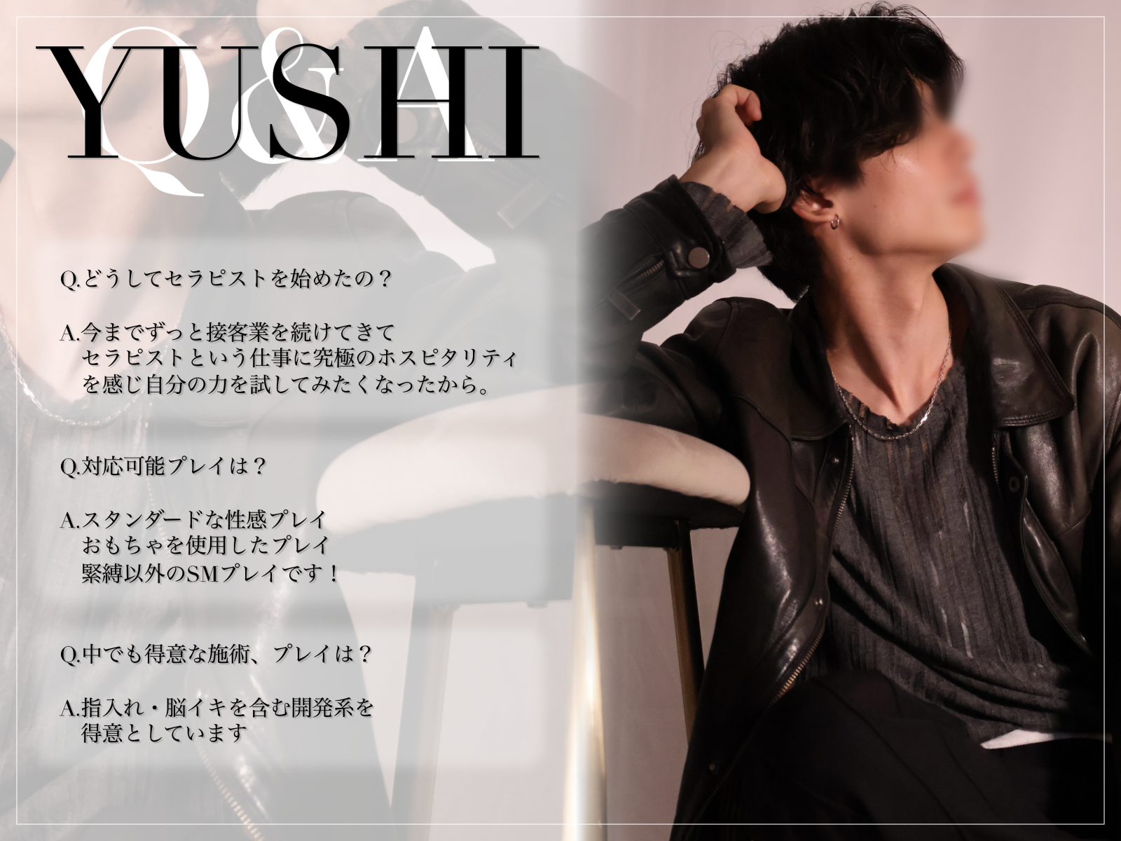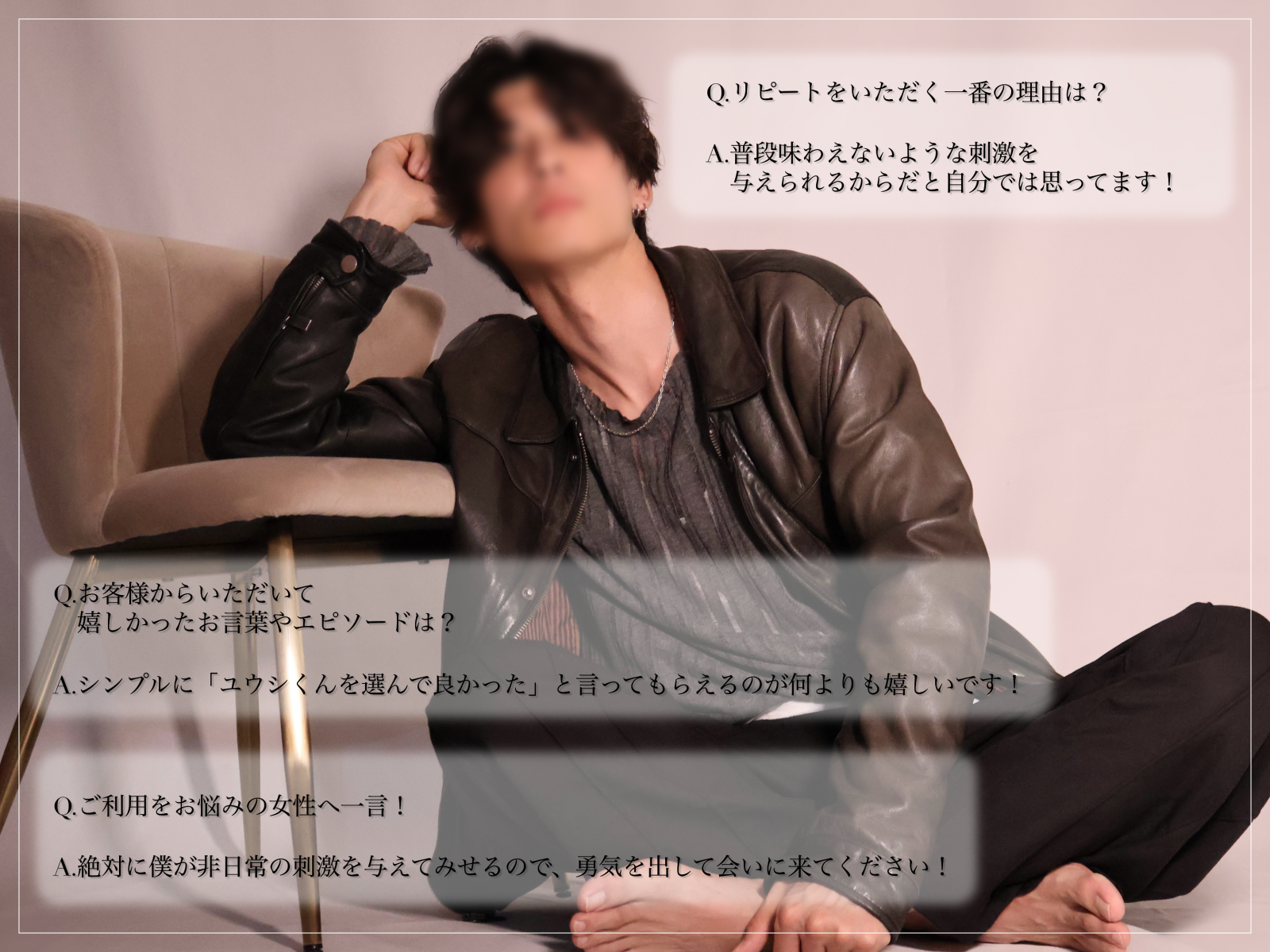 とても人気者YUSHIくんに1度会ってみたくてご予約しました!会う前からDMがすごく丁寧で、ちゃんとお客様として大切にしている姿に感心してしまいました!でも会った瞬間から距離をグッと縮めてくれて、話も上手!たくさん笑ったし、たくさんイチャイチャして遊びました!笑 それも含め楽しい時間を与えてくれる紳士です!でも気遣いや優しさがお兄ちゃんみたいで、年下なのに、頼って、甘えれてしまうオーラと優しさがすごいあるから、初めの人でも安心できると思います!