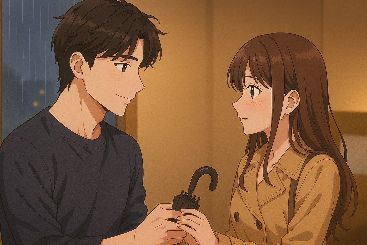 雨に濡れた私に、彼がさりげなくタオルを差し出す。