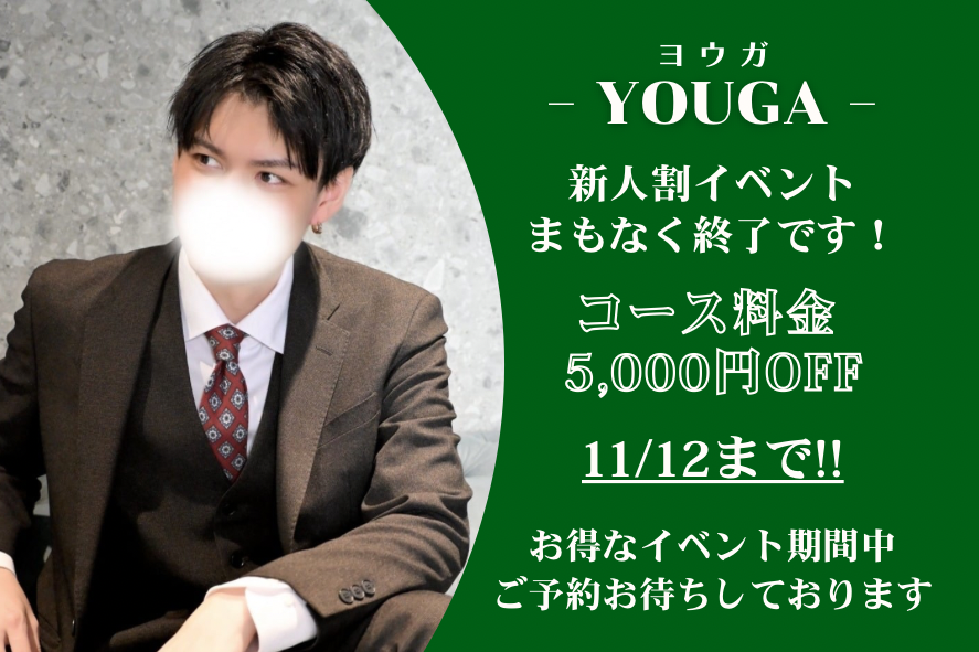 YOUGA(ヨウガ)の新人割イベント11/12まで!