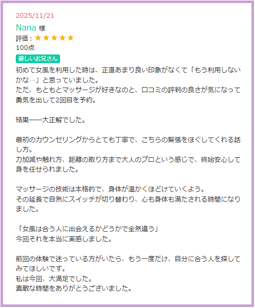 ※投稿セラピスト名と投稿者名をお申し付けください