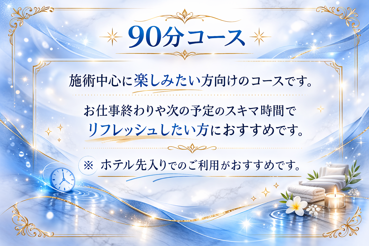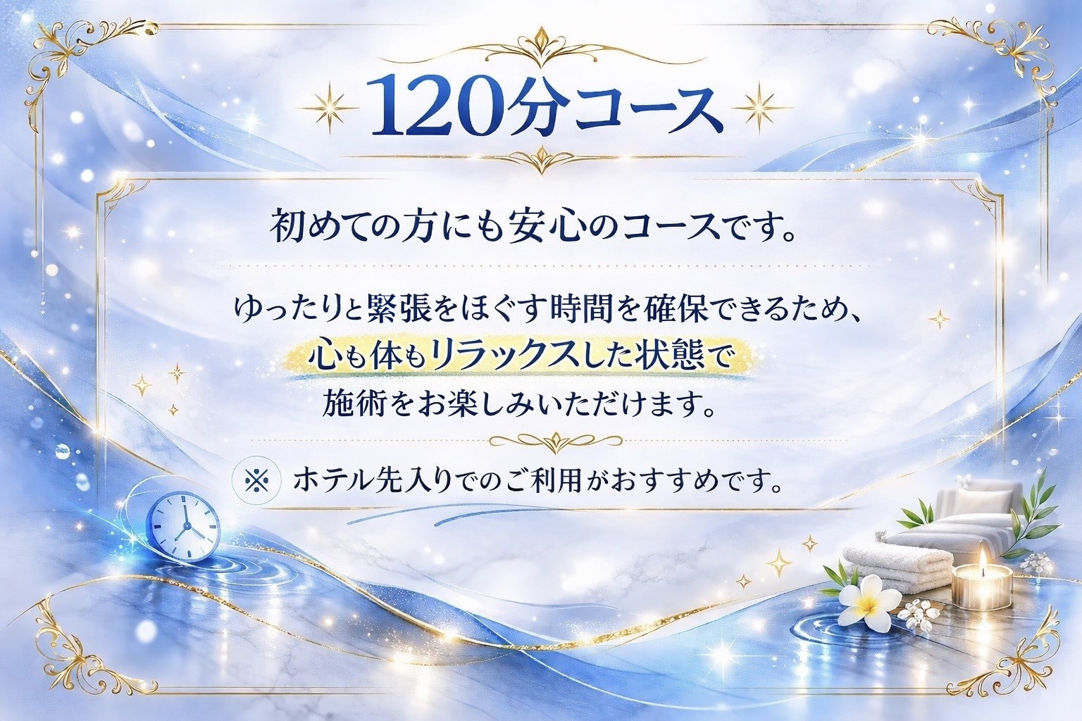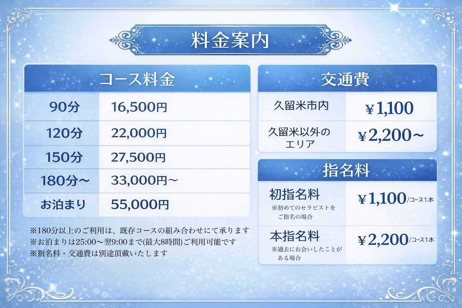 90分・120分・150分・お泊まりの4種類!