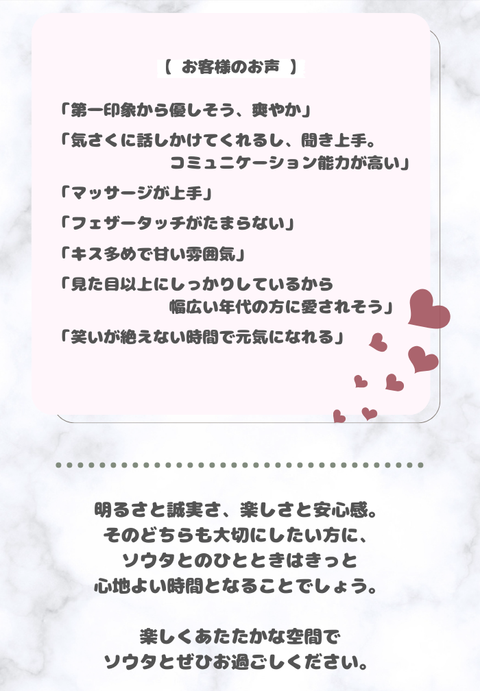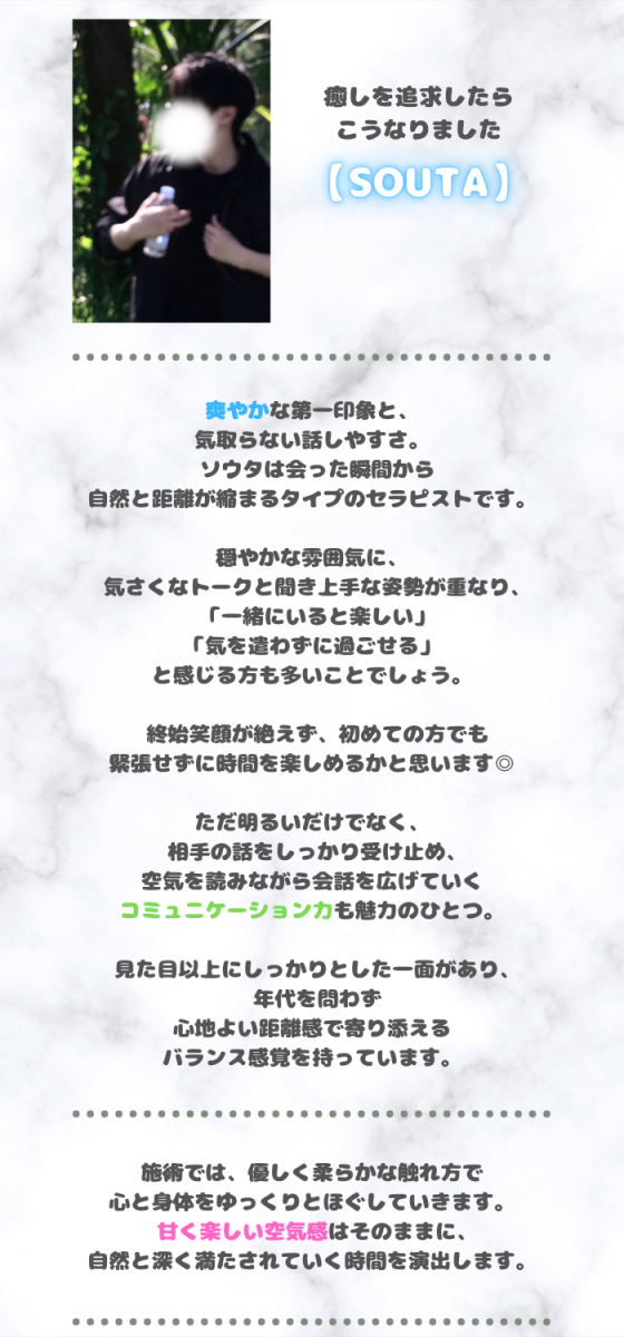 ※ご希望があれば恋人プレイ等も可能ですので男性セラピストにお申し付け下さい。