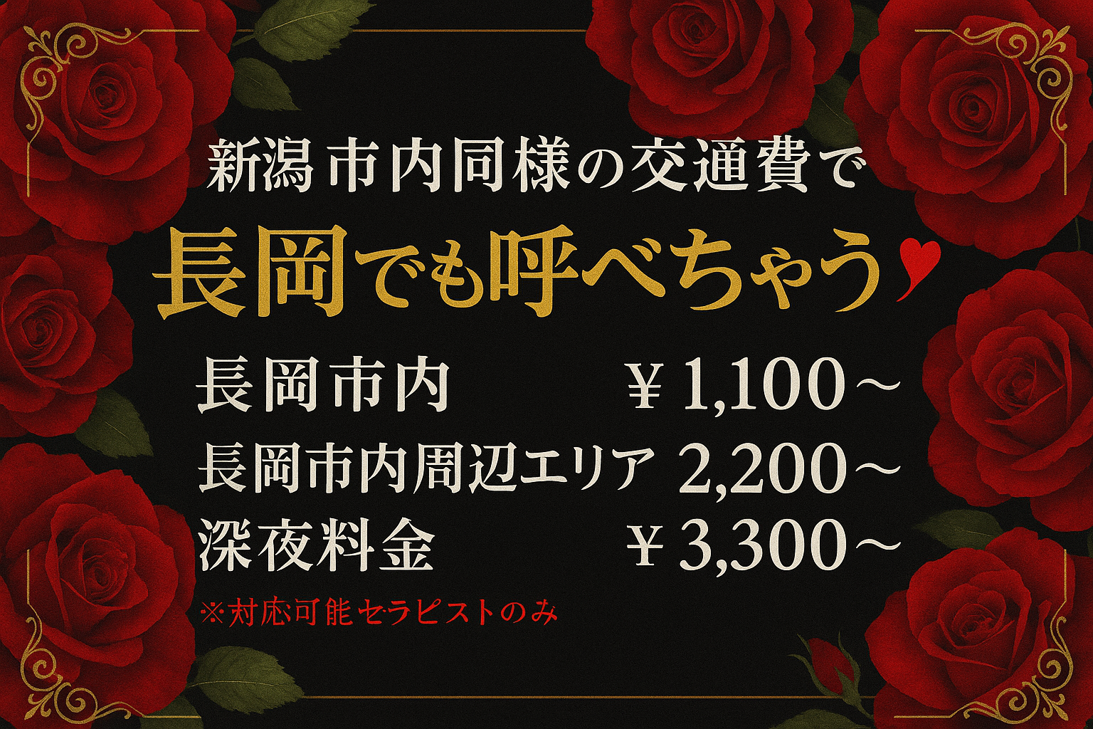 【長岡交通費対応セラピスト一覧】
