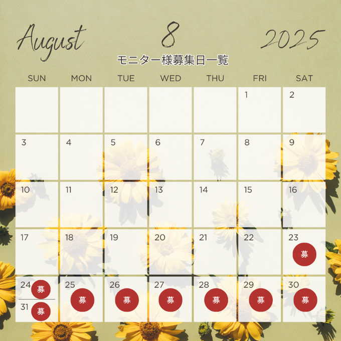 ~9/3までモニター募集ෆ日程追加しましたෆ